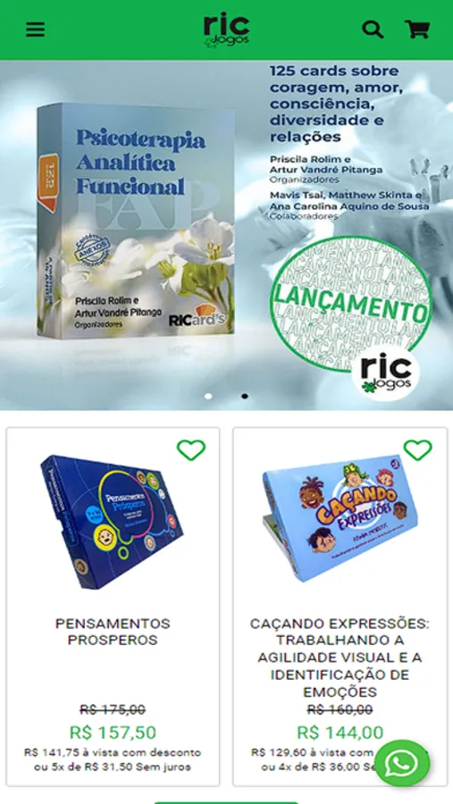 São cards de intervenção, jogos, baralhos, adesivos e outros recursos lúdicos com alta qualidade de conteúdo e de impressão gráfica. Auxiliam desde a identificação e a regulação das emoções, passando pelo desenvolvimento das importantes habilidades para a vida e alcançando o tratamento de distúrbios que afetam o bem-estar, a funcionalidade e a saúde plena das pessoas.