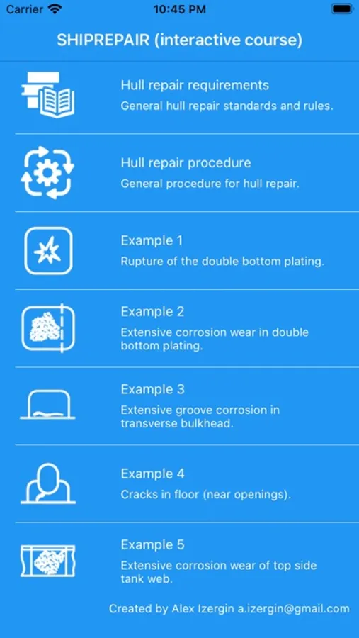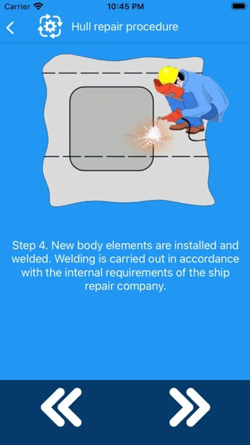 Do you know how a ship is repaired? With our interactive application, you will know all the ship hull repair requirements. Our application collects IACS and class requirements. Repair requirements, repair procedure, examples of repair of various structures and testing - it's all collected in our application.