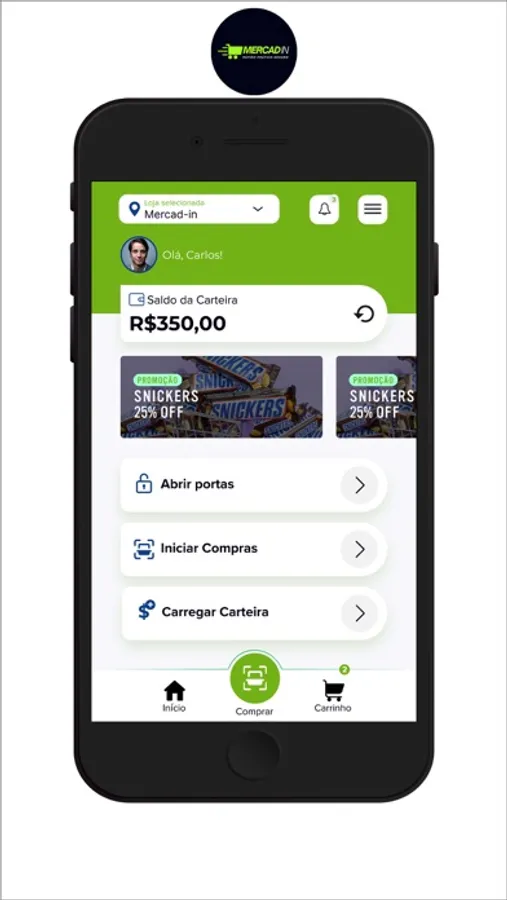 Com o aplicativo Mercadin vai ser muito mais fácil fazer compras. Com ele você irá ter acesso às nossas lojas simplesmente scaneando o QR code na porta de entrada através do seu celular. Para comprar, basta apontar a câmera do seu celular para o código de barras do produto desejado, confirmar o seu carrinho virtual e fazer o pagamento pelo próprio aplicativo ou pela maquininha de cartão. Seu tempo é precioso para nós.