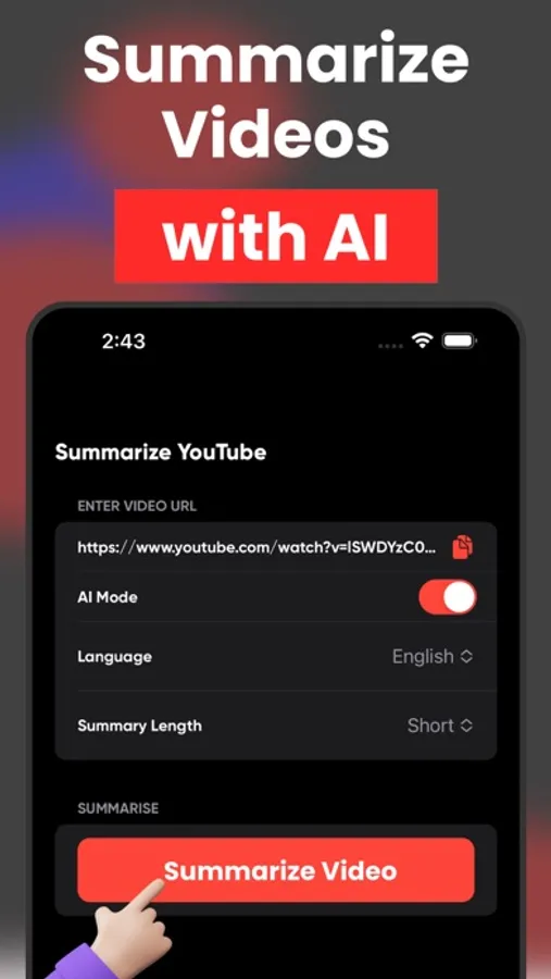 "Summarizer for YouTube" is an independent application developed by us. It is not affiliated with, sponsored by, or endorsed by YouTube or its parent company, Google. The app is designed to provide users with video summaries using AI technology, but it is not an official product of YouTube. Any references to YouTube, its trademarks, or any other third-party trademarks are purely for descriptive purposes and do not imply any connection, endorsement, or partnership between "Summarizer for YouTube" and YouTube or its affiliates.