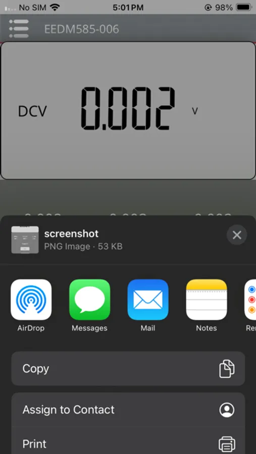 An app that assists in reading various measurements including voltage, resistance, capacitance, Hz, temperature, current, and wattage.