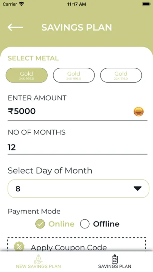 Customers can create an Monthly Saving Plan (SIP) in the App."