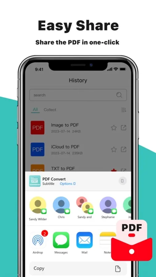 Easily send and share converted PDF files via social media, Bluetooth, Email, quick share, etc.