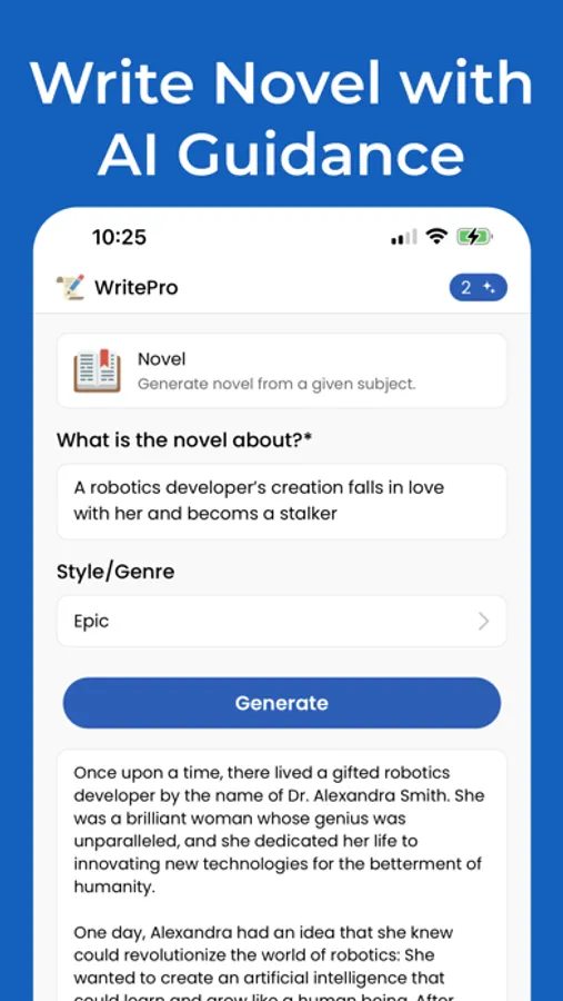 1. Chatbot Assistance: Kickstart your creativity with our intelligent chatbot, a friendly companion that offers writing prompts, suggestions, and creative ideas. Break through writer's block and let your thoughts flow effortlessly.