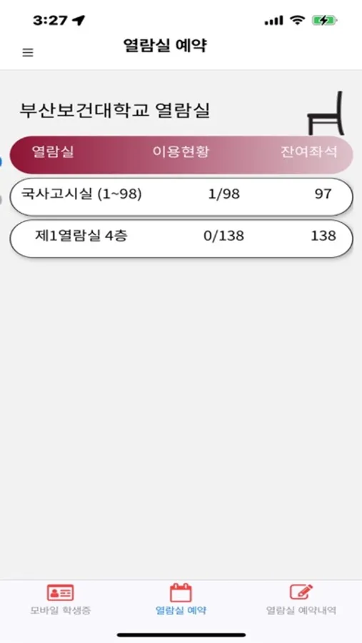부산보건대학교 모바일 좌석예약시스템입니다.
