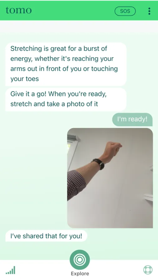 ENGAGE WITH OUR FRIENDLY BOT, TOMO: Receive activity and habit suggestions to boost your mental wellness. Keep motivated with the progress tracker.