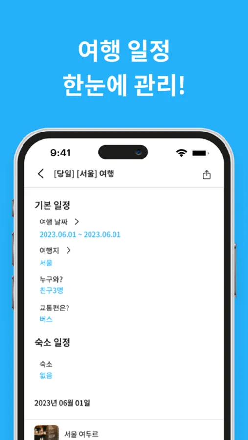 공유를 통해 함께할 친구들에게 한눈에 보기 편한 여행일정을 공유하며 함께 여행을 떠나세요!
