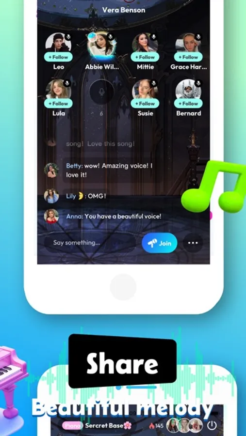 - Collaborate and create beautiful music together, all while chatting and connecting with each other.
