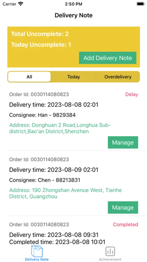 Delivery note record can record the daily delivery notes to be delivered. It can facilitate the statistics of the achievement of delivery personnel
