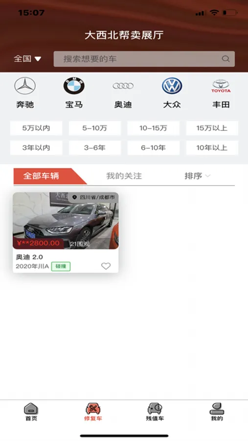 成都大西兆故事汽车销售商行成立于2022年,是专业的事故车展示平台,为二手车商、配件商等专业买家提供丰富的车源、配件和优质的服务。