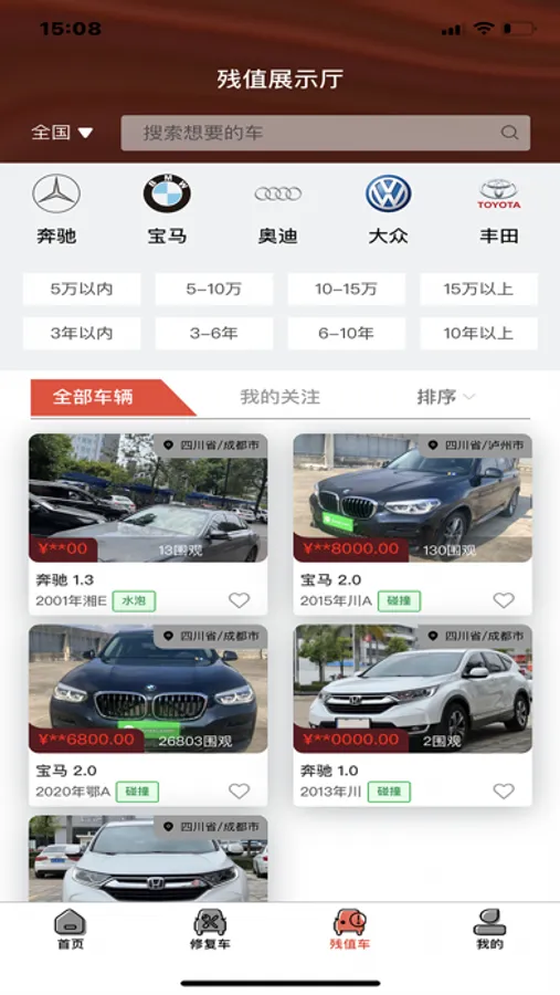 修复车辆展厅、残值车交易展厅两个主要模块,会员可以在修复车展厅和残值车展厅卖事故车进行车辆的查看及联系。用户仅需完成注册、缴费与认证,即可尊享各项服务和权益。