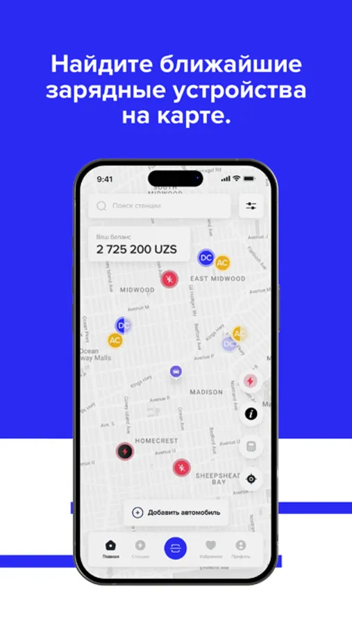 2. Найдите ближайшие зарядные устройства переменного / постоянного тока на карте.
