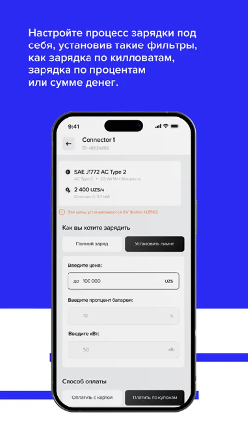 5. Настройте процесс зарядки под себя, установив такие фильтры, как зарядка по килловатам, зарядка по процентам или сумме денег.