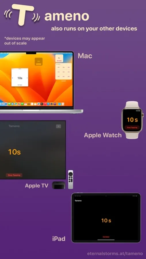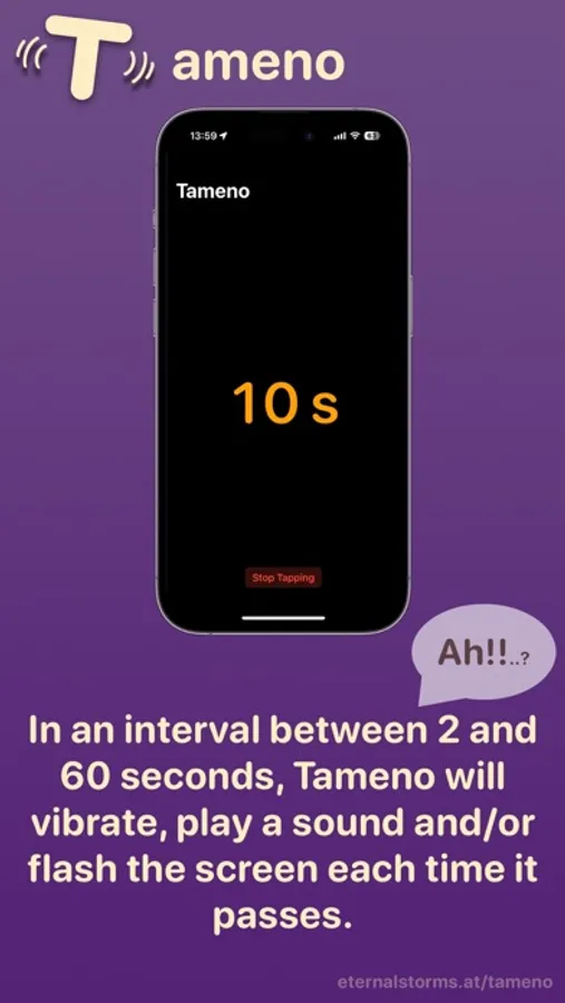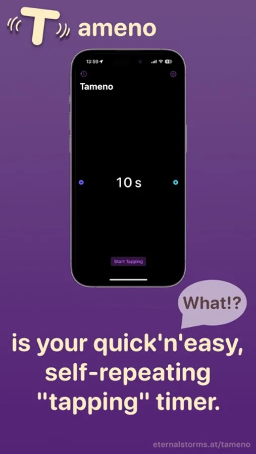 Tameno is your easy-to-use, self-repeating tapping timer that taps you each time your desired interval elapses.
