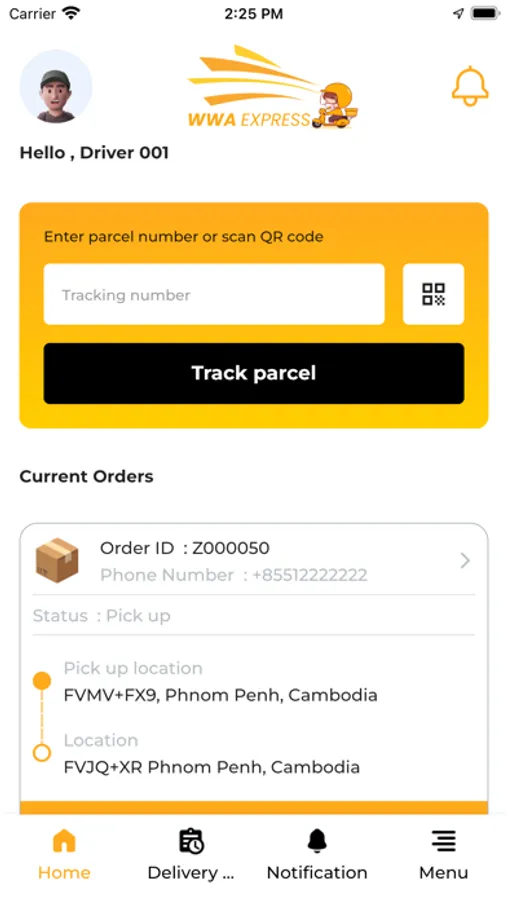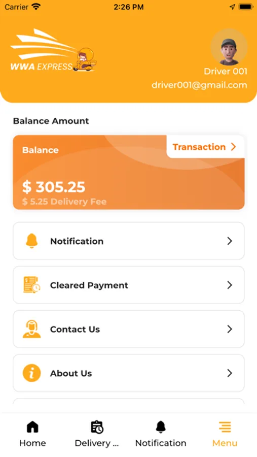WWA Easy Express Delivery is the app for our driver use for their own task. They able to check their own information.