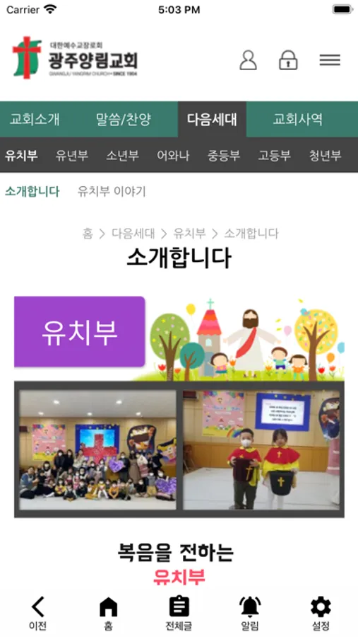 * 100% 연동형 앱 : 홈페이지에 등록된 내용, 게시물, 설교영상, 사진 등의 콘텐츠를 앱과 100% 연동하여 실시간으로 앱을 통해 확인할 수 있습니다.