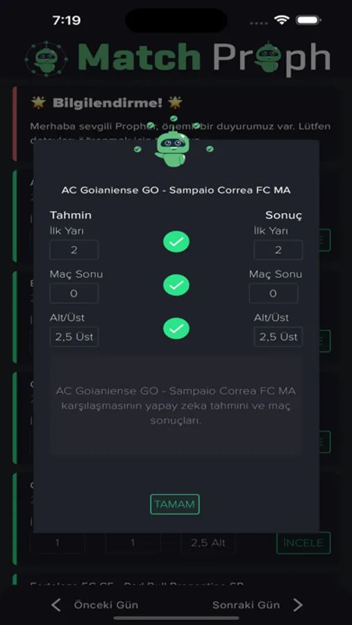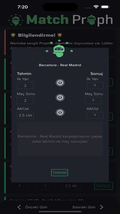 That's where we step in! Our app provides AI-powered predictions for football matches scheduled every day. All you have to do is select your match of interest and peek at the predictions our AI has generated for you.