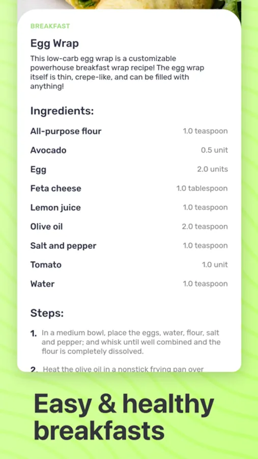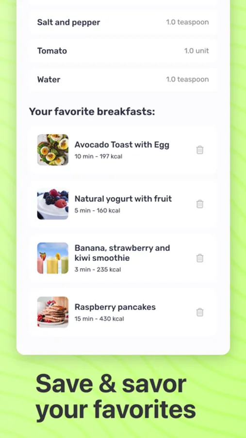Found a breakfast recipe that stole your heart? You can easily save your favorite breakfasts and revisit them whenever the craving strikes. Never lose track of that perfect avocado toast or mouthwatering smoothie bowl again. Your personalized collection of breakfast ideas is just a tap away.