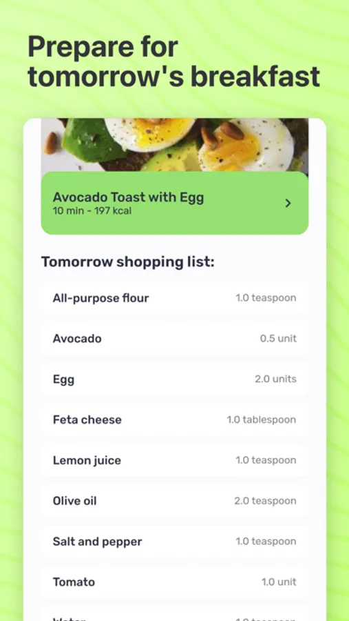 Sunbite not only helps you create delicious meals but also simplifies your shopping experience. We provide you with a handy buying list of ingredients for tomorrow's breakfast. Plan ahead and ensure you have all the essentials ready, so you can enjoy a seamless cooking process every morning.