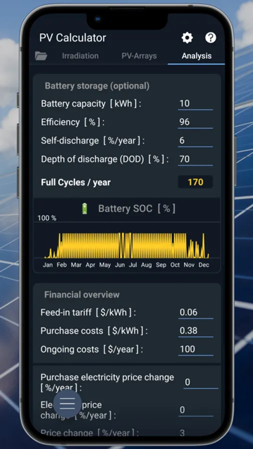 * Hourly resolution allows an accurate view of production and battery storage throughout the day