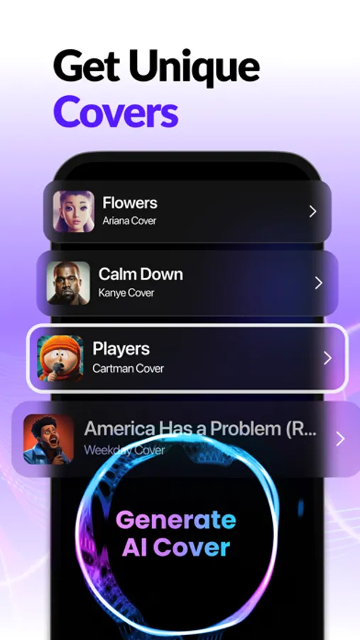 - Voice Swap Magic: Choose a song, then pick a fresh new voice. AI COVER does the wizardry! It's like hearing a familiar tune in a surprising new style.