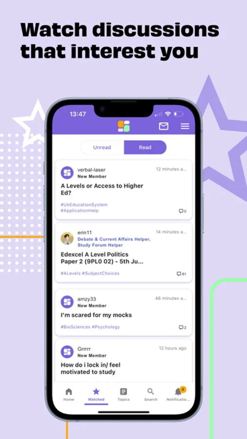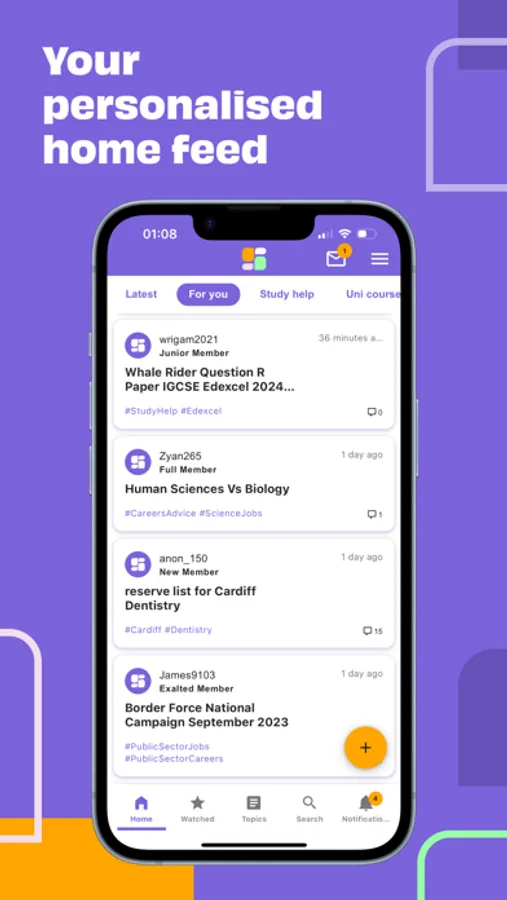 - Personalise your home feed with relevant discussions.