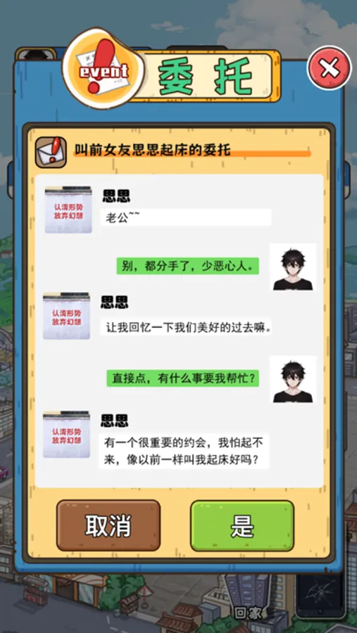曾经的我坐拥千亿资产,金融危机让我彻底破产,可爱的伴侣也离我而去,过往的辉煌不必再回忆,现在的困境需要去改变,准备出门赚钱吧!