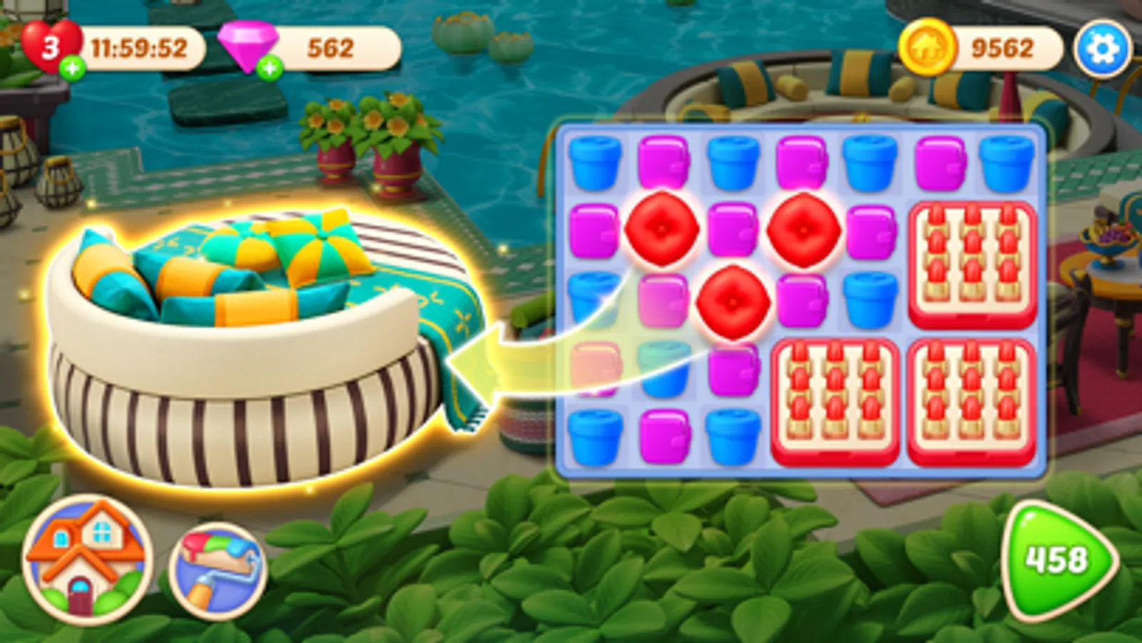Welcome to Makeover Master, the ultimate home design game that will challenge your brain with addictive match 3 puzzles and give you the satisfaction of designing a wonderful home!