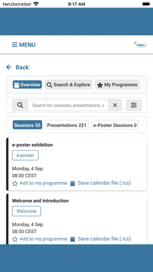 With this app, ESMINT Congress 2023 offers the opportunity to browse, search and view the full scientific programme. You can also create your personal schedule and view eposters.