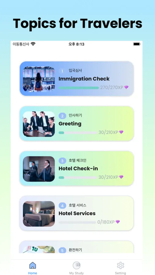 Once you download this app, you don't need Wi-Fi. Download it before boarding the plane and study Korean easily on the plane.