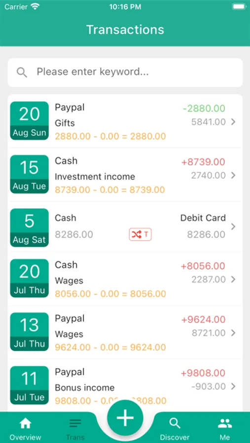 MoneyTo supports detailed transaction records. You can check the balance of each income and expense record, which makes it easy for you to maintain accurate records.