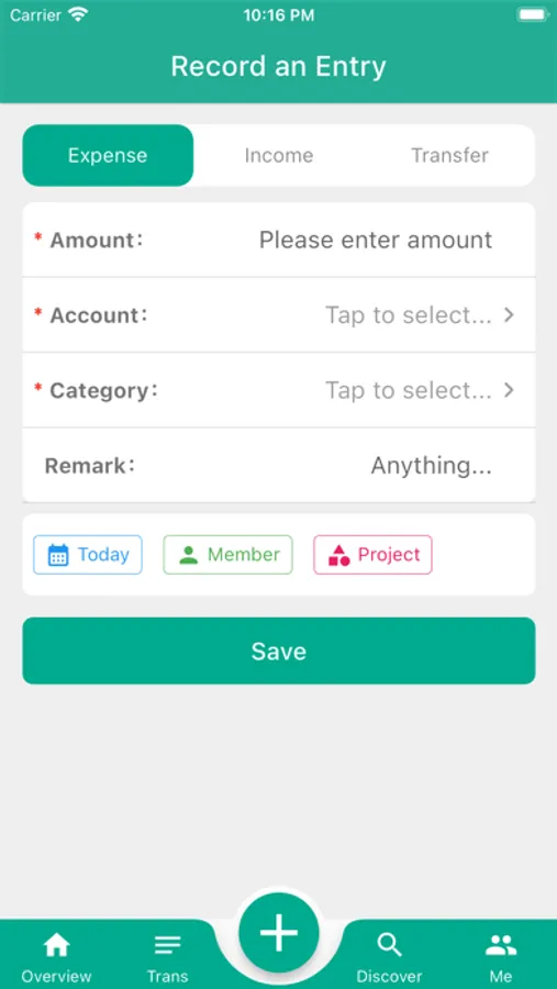 MoneyTo supports the management of projects and family members, allowing you to easily customize and manage income and expenses.