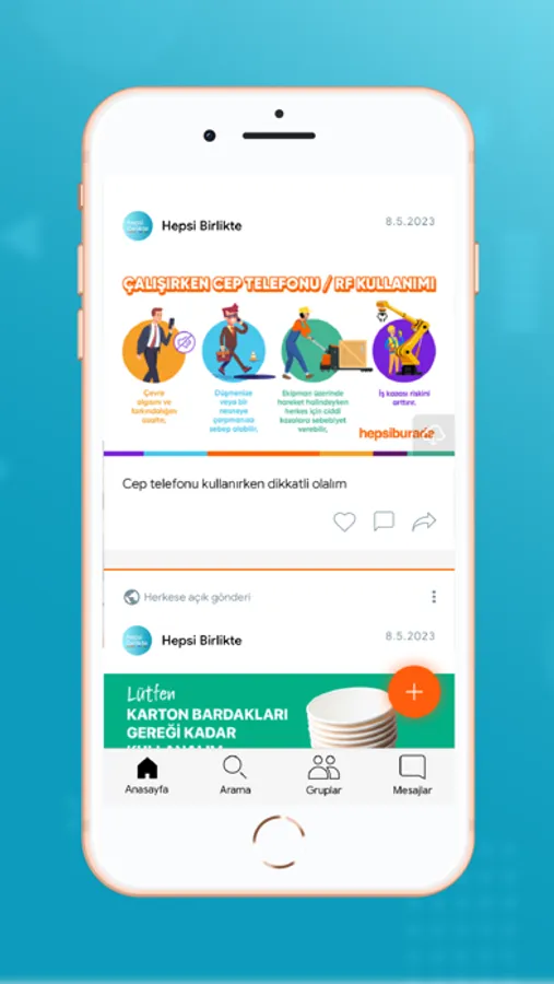 HepsiBirlikte sosyal paylaşım platformu üzerinden içerik paylaşımları yapılır, duyuru ve bildirimlerle anlık bilgilendirme yapılabilir, anketlerle geri bildirim alınabilir.