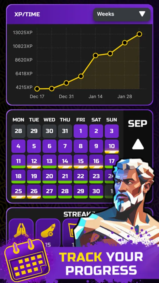 - An effortless and fun habit tracker with clear goals that slowly increase in difficulty