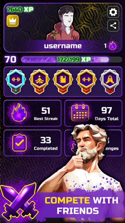 - Social features, including a leaderboard to compete with your friends and motivate each other to succeed
