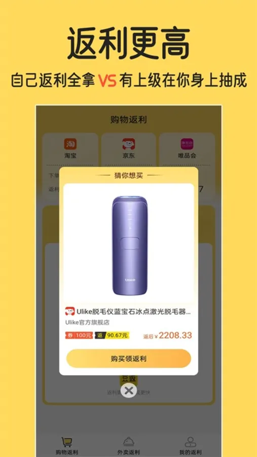 极简风设计,没有上下级,也不用拉人升等级,是一款以纯自用返利为目的的省钱神器。