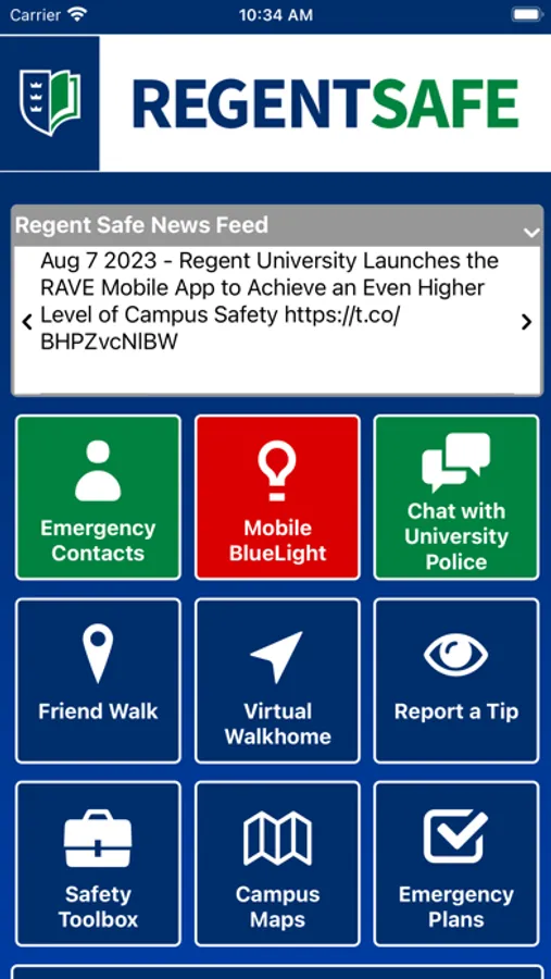- Mobile Bluelight: Send your location to Regent University security in real-time in case of a crisis
