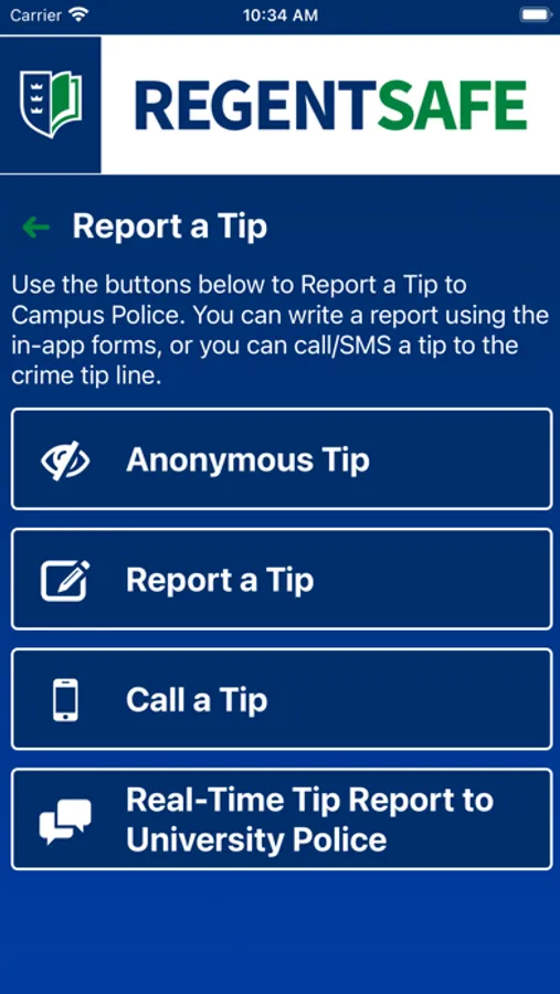 - Tip Reporting: Multiple ways to report a safety/security concern directly to Regent University security.