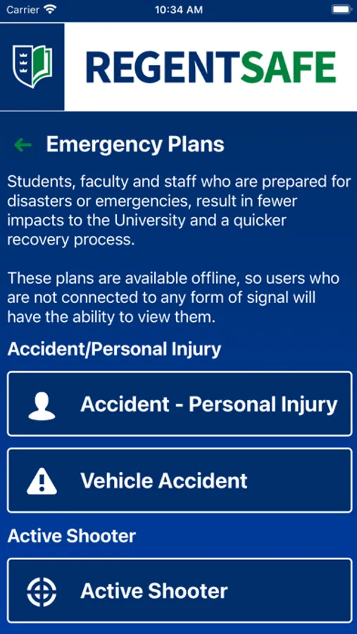 - Emergency Plans: Campus emergency documentation that can prepare you for disasters or emergencies. This can be accessed even when users aren’t connected to Wi-Fi or cellular data.