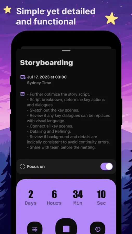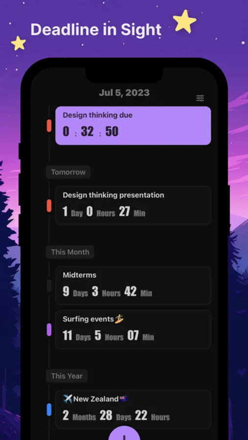 In addition, our perception of time also affects our behaviour. Unlike vague memory or facing a distant date, Backwards Clock visualizes the remaining time of tasks and presents it in a simple timeline view. These visual cues help us master time and prevent forgetfulness, panic, and unpreparedness.