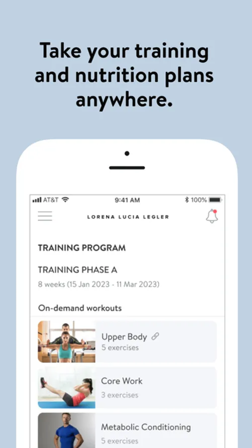 With the Lorena Lucia Legler Coaching App, you will have access to various workout programs designed specifically to help you reach your fitness and health goals! You can follow & track your workouts, your nutrition, your lifestyle habits, measurements and results in one place.