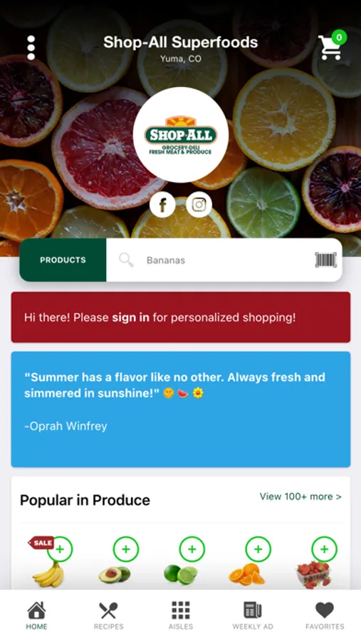 Order your groceries from Shop-All Superfoods on the go on your mobile device or from your iPad on your couch. Our award-winning grocery app makes grocery shopping a breeze with quick access to our weekly circular, an easy-to-use product search, detailed product details and labeling, tasty recipes, and family meal planning tools. What could be better than that?