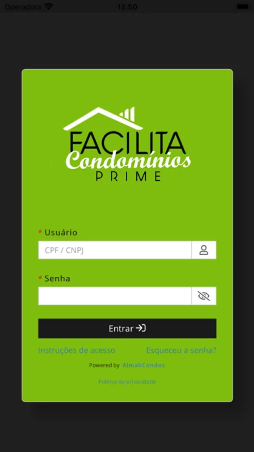 Este aplicativo é exclusivo para usuários da Facilita Condomínios Prime.