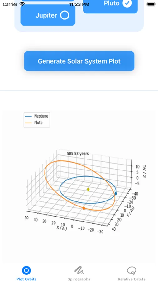 Whether you are a student looking to gain an accurate understanding of planetary motion, a teacher looking to demonstrate orbital motion in the classroom, or an artist looking to appreciate the beauty of the universe, use this app to dive into the inner workings of star systems by generating orbital animations, spirographs and relative orbits.