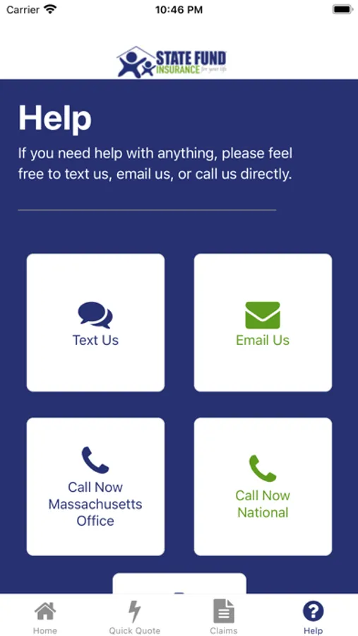 4. One-Stop Help Page: Need to get in touch? Our dedicated help page is your go-to hub. Whether you prefer to email, call, or text, you're just a tap away from our support team at State Fund Insurance.