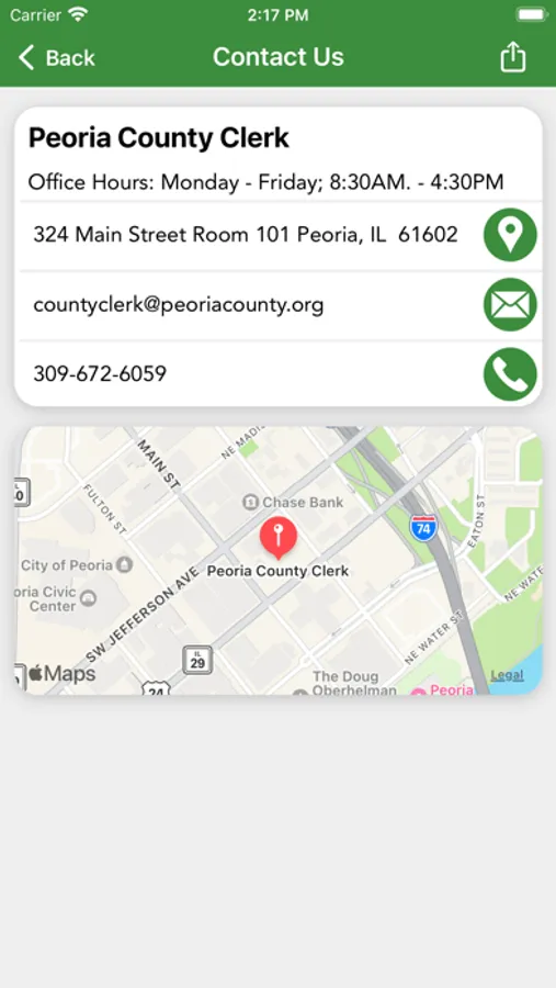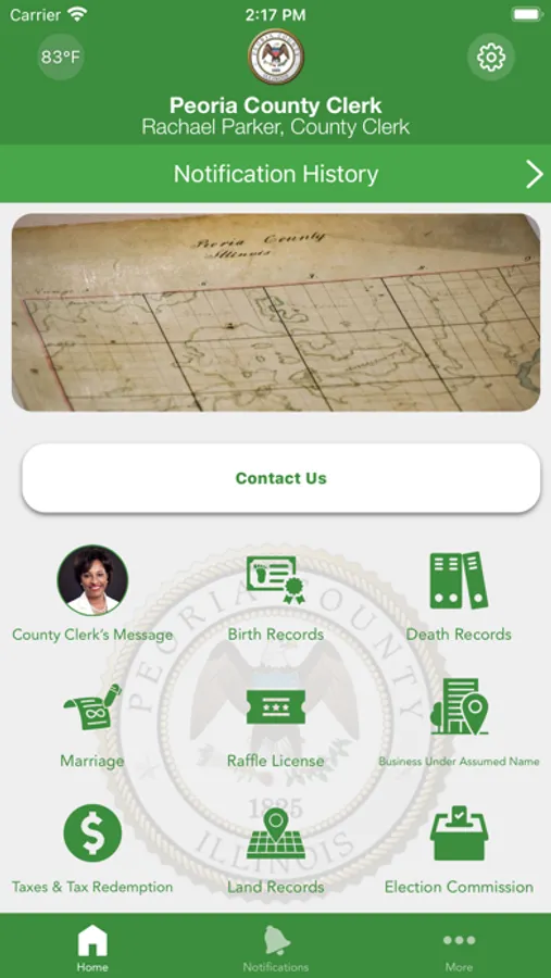 The Peoria County Clerk mobile application is an interactive app developed to help improve communication with area residents.