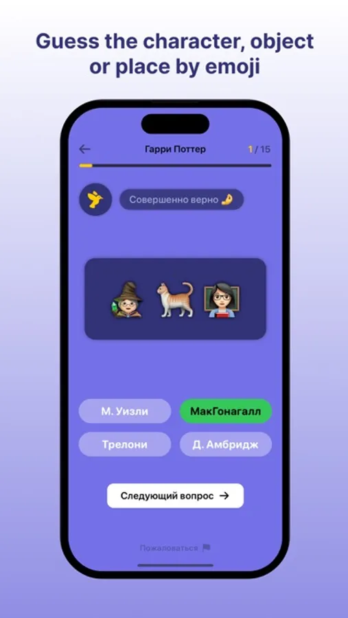 • Guess the character: find out how well you remember the characters of your favorite stories. Can you recognize them with just a few emojis?