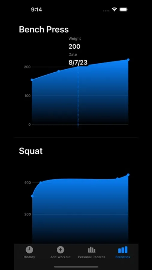 Discover the ultimate fitness companion in GymCharts! Elevate your workouts, crush your personal records, and track your progress with ease. From visualizing your gains to seamlessly logging workouts, GymCharts empowers you with data-driven insights to fuel your journey. As you enter in new workouts, you can view your personal records, statistics, and workout history!