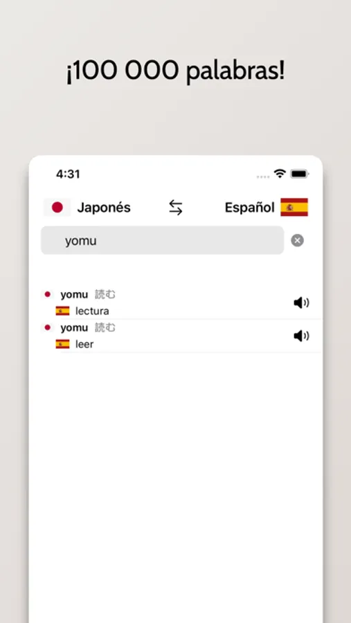 - Posibilidad de buscar a partir de palabras en Español o Japonés