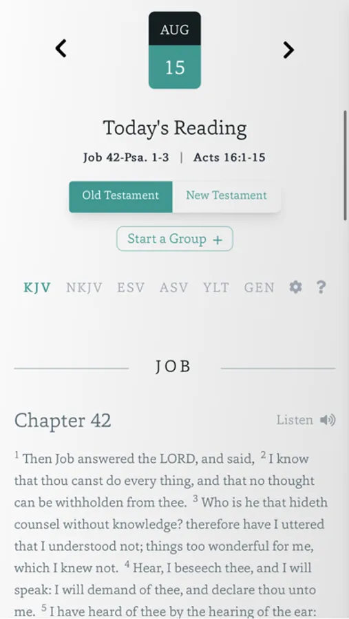 Journey Through the Bible was designed to help you and your family read through the Bible in a year. Choose from OT/NT or chronological plans, set a start date, invite friends/family, and dive in. Pick your favorite translation and read or listen on your phone. When you've finished, mark the day as completed to track your progress.